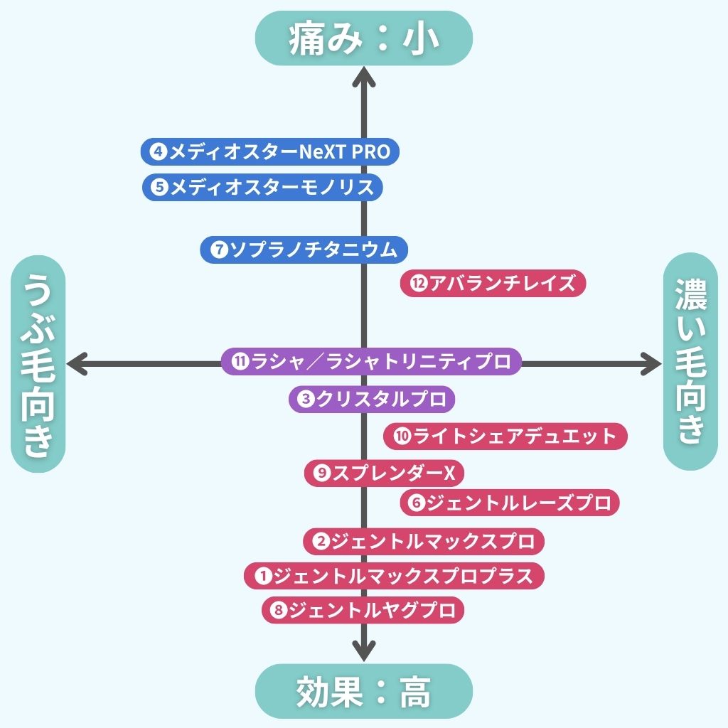 - 1位:ジェントルマックスプロプラス(太い毛に強く、効果を実感しやすい)