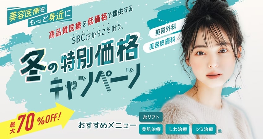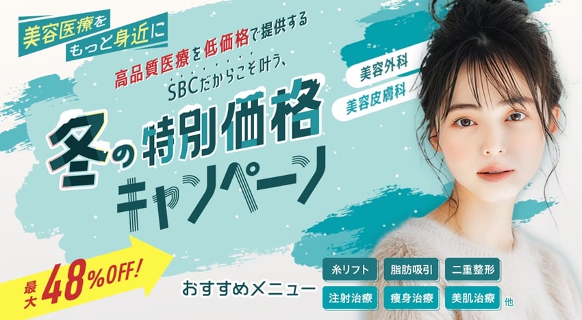 | 2025年9月1日 NEW | ✅美容皮膚科:12月末まで ✅美容外科:12月25まで | 冬の特別価格キャンペーン最大48%OFF! |