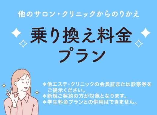 乗り換え割引(脱毛)![]() ![]() | 最大30,000円OFF | 他のクリニックやサロンから乗り換える方 |