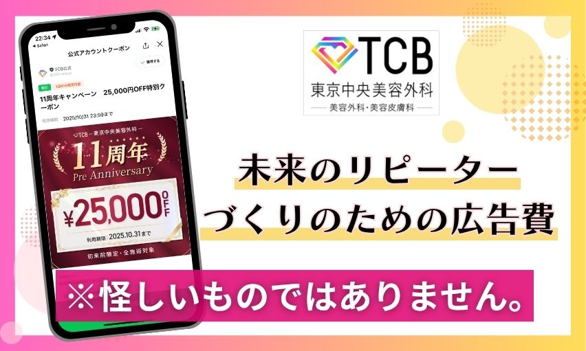 以上、TCB東京中央美容外科の25,000円無料クーポンが「怪しい」と言われる理由から、その真相や賢い使い方までご紹介しました。