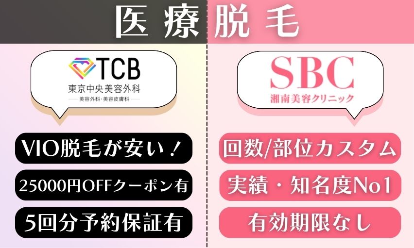 【脱毛比較】TCBと湘南美容クリニック(SBC)は結局どっちがいい?