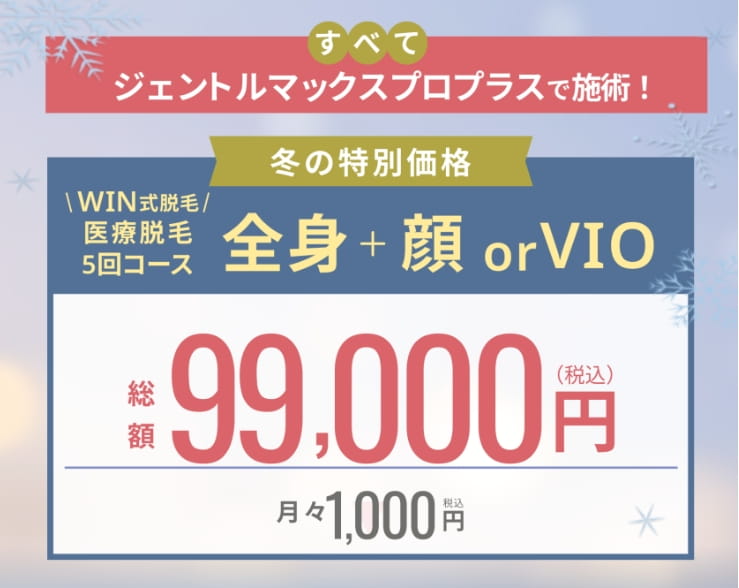 ウィンクリニックは現在、医療脱毛の冬キャンペーンを実施中です🎉