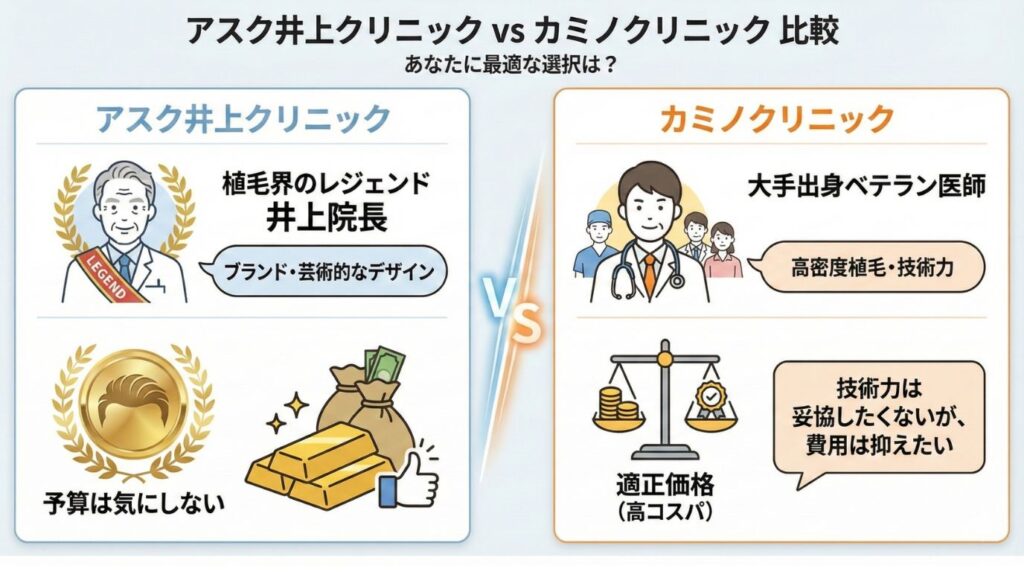 【まとめ】アスク井上 vs カミノクリニック|あなたの「ハゲ具合」と「財布」で選ぼう