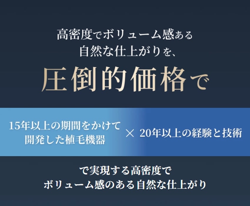 まるで熟練の職人のような手仕事により、「えっ、これ植毛なの? 全然わからない!」というレベルの自然さを実現しています。この技術力が、標準価格で受けられるのは本当にお得ですよ。