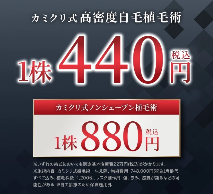 | 生え際 | 800株〜 | 14,900円〜 | 1,012,000円〜 |