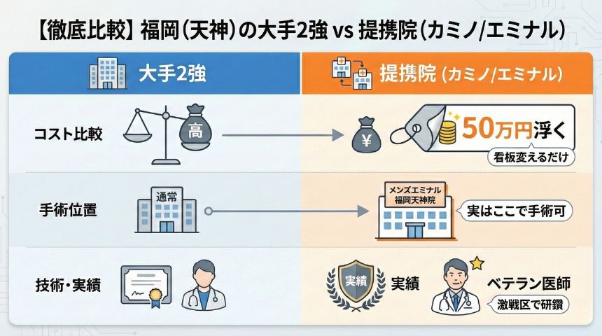 【徹底比較】福岡(天神)の大手2強 vs 提携院(カミノ/エミナル)