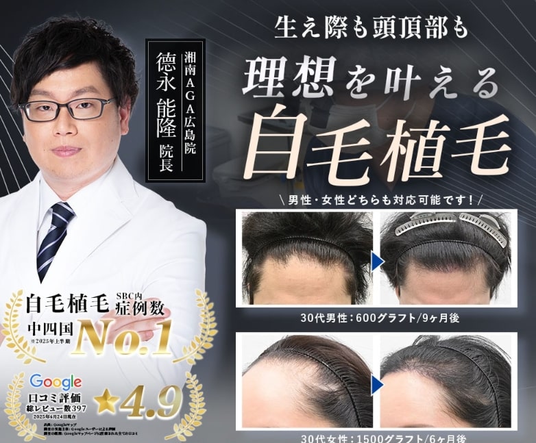 そこでこの記事では、広島から通える自毛植毛クリニックを徹底調査し、