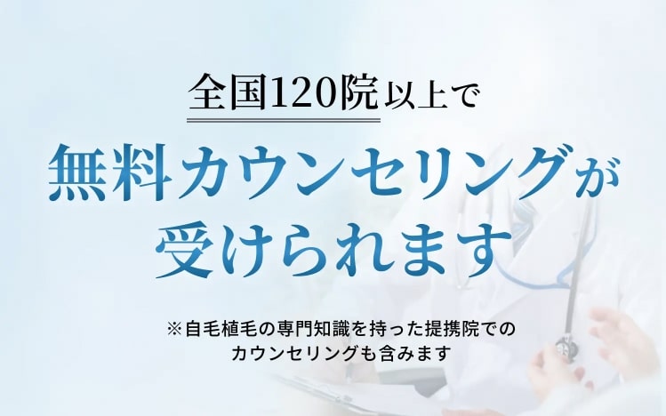 カミノクリニックでは、全国120院以上の提携医療機関で無料カウンセリングを実施しています。