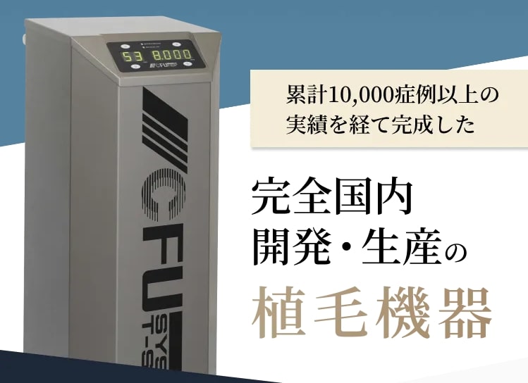 カミノクリニックでは、日本の医療機器メーカーと共同開発したオリジナルの植毛機器「QFUシステム」を使用しています。